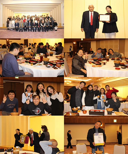 忘年会開催前に記念撮影を行い、勤続10年の表彰、抽選会と楽しい時間を過ごしました。